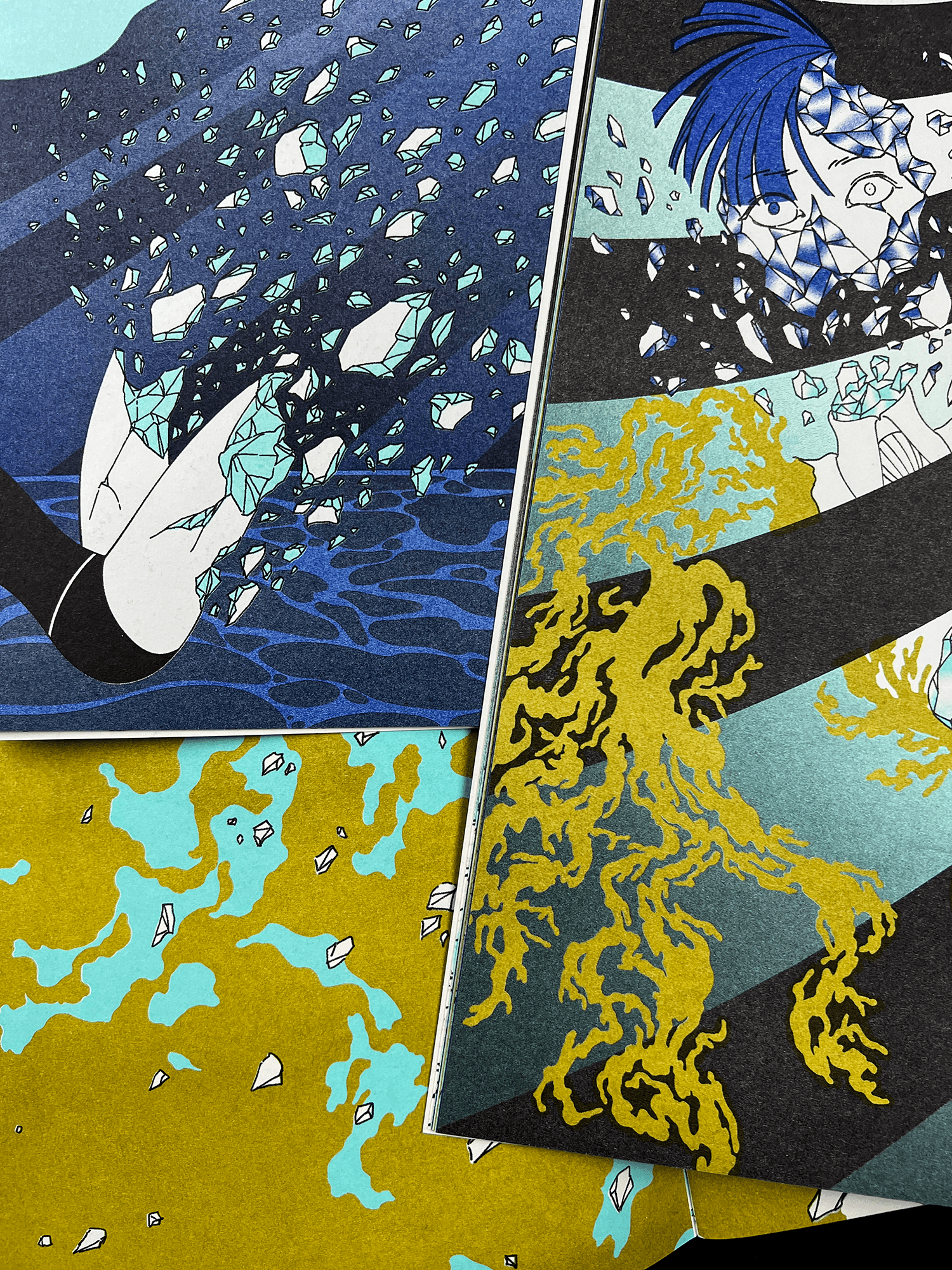 Hi! I’m Pecco, a print artist with a concentration in the risograph printing medium. My work is a mix of fandom and original, including a range of prints, zines, enamel pins, and stickers. Fandom franchises include Houseki no Kuni, Evangelion, Hunter x Hunter, Death Note, and more.
